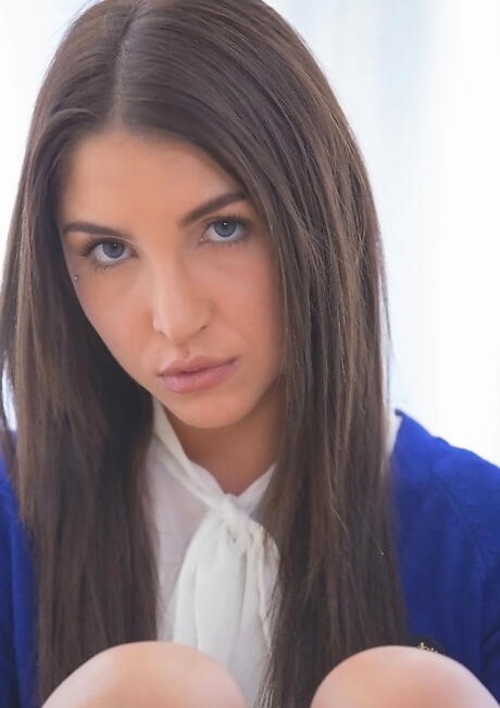 Luscious american teen Giselle Leon in uniform outfit exhibiting her ass and spreading her legs