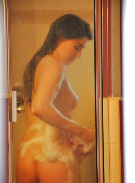 Luscious american teen Megan Piper baring big titties and hot ass in shower