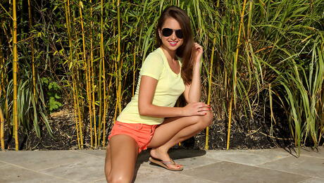 Luscious american teen Riley Reid baring tiny tits and bald pussy outdoor