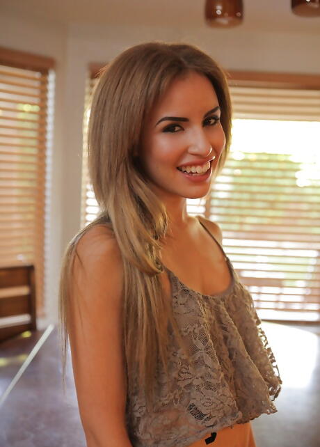 Luscious american youthful Natasha White in fancy shorts uncovers tiny tits and jerks off