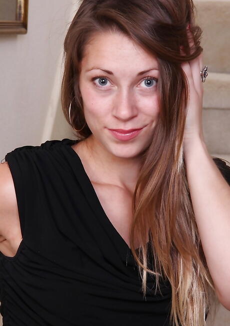 Luscious babe Candice Ferguson unveiling tiny tits and bald pussy