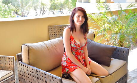 Luscious brunette young Lexi reveals her ass in and loving sex toy