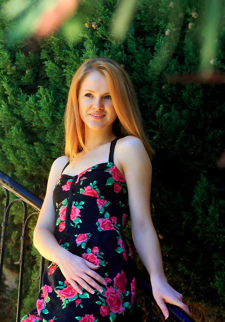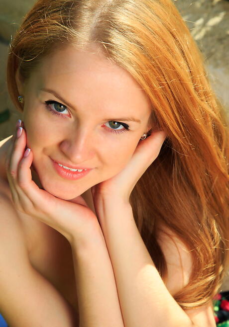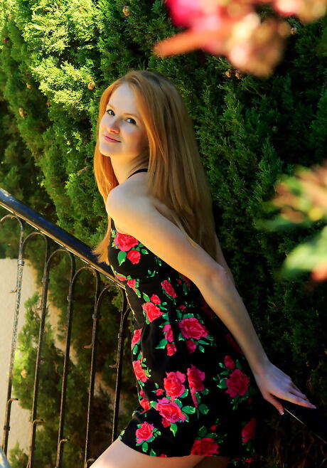 Luscious byelorussiann redheaded young Alice May unveils tiny tits and spreads her legs outdoor