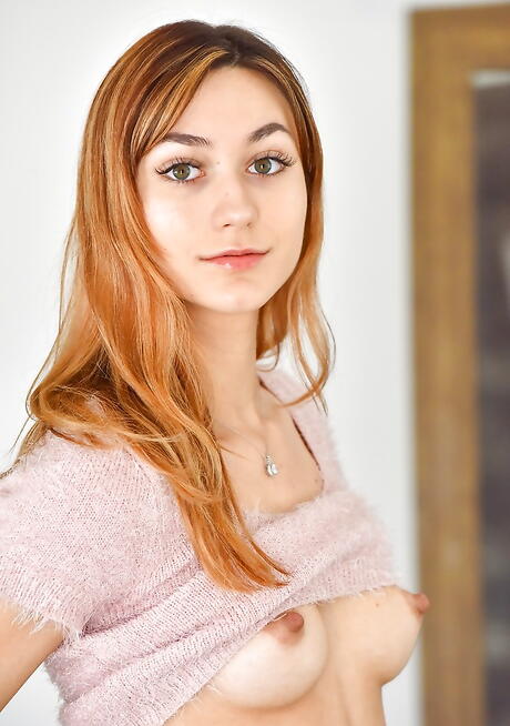 Luscious czech redhead Ana Rose in sexy undies showing small tits and sexy ass outside