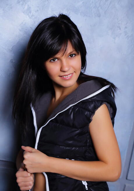 Luscious dark hair teen Zelda B in skirt exhibiting big boobs and shaved pussy