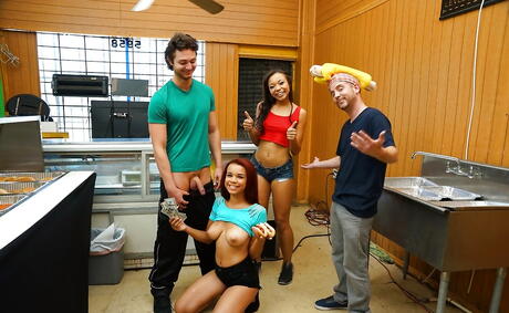 Luscious hotties Adrian Maya and Raven Redmond in amazing group sex scene