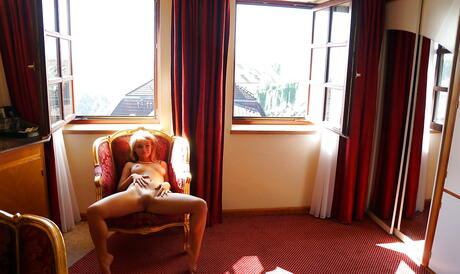Luscious redheaded youthful Malinda A denudes big boobies and shaved pussy in bath
