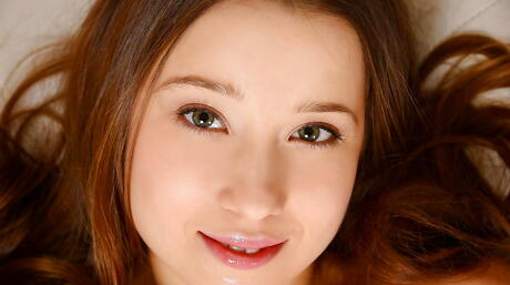 Luscious russian dark hair young Taissia Shanti in panties uncovers small tits and toys her cunt