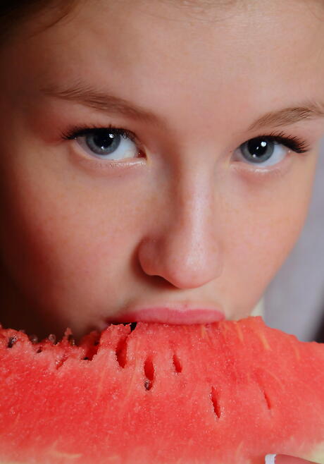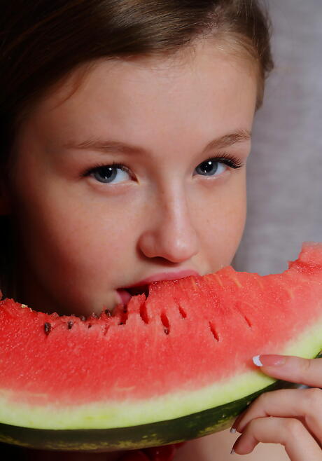 Luscious ukrainian youthful Emily Bloom reveals big knockers and spreads her legs