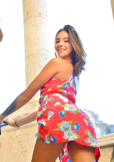 Luscious young Roxy Raine uncovering tiny tits and puting a toy in her cunt outdoor