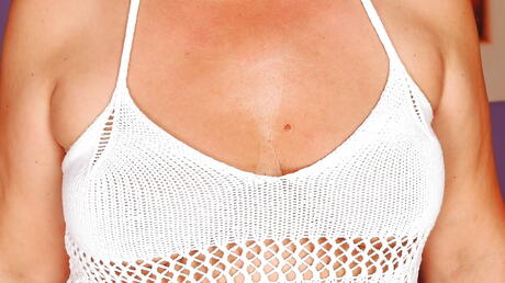Lush hungarian mature Salome in sexy skirt exposing big tits and butt