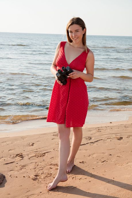 Adorable teen Dominika Jule strips down on a beach fearlessly