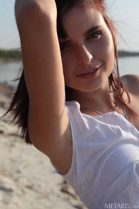 Adorable teen Flaca goes nude on a sandy beach by the ocean