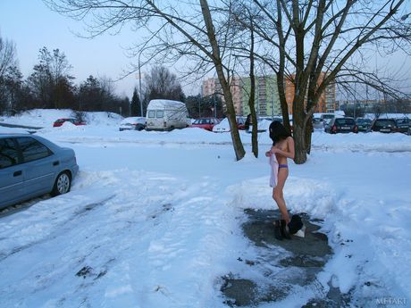 Adorable teen Gwen A poses naked in the snow and shows her tiny tits