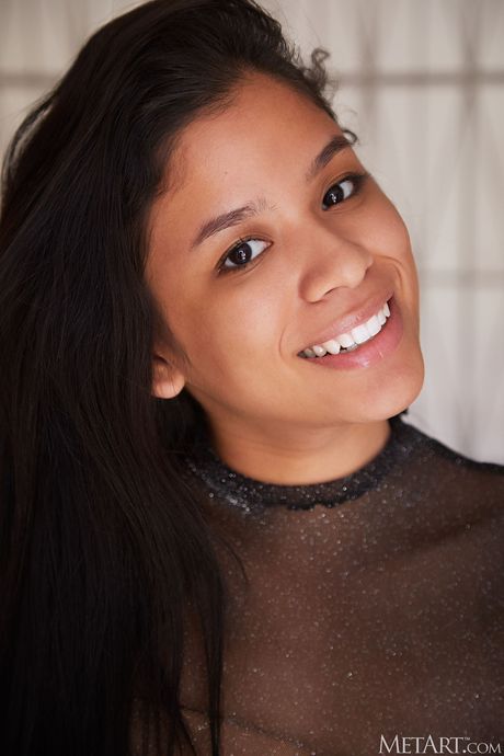 Alluring brunette Karin Torres highlights her big tits and poses naked