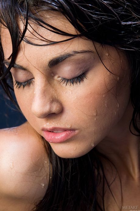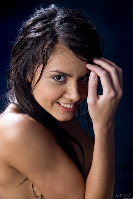 Alluring teen Astrud A shows her big tits and bald pussy in the nude