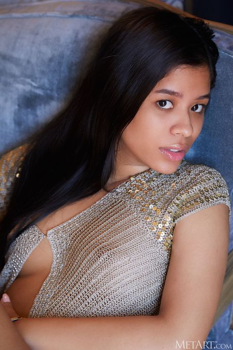 Alluring teen Karin Torres removes a beaded top to get naked with grace
