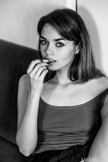 Alluring teen Keira Blue removes her clothes and poses naked on a table