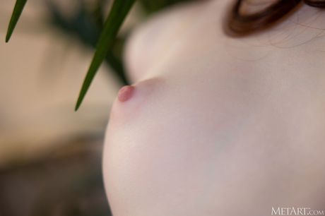 Alluring teen Pearl removes her lingerie and stockings to get bare naked
