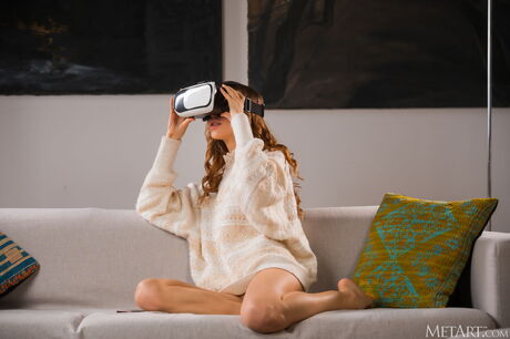 Angelic teen Alice Bright removes a sweater before showing her tight ass and pussy