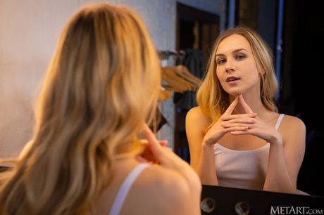 Angelic teen Arya removes her underwear to get bare naked in a dressing room