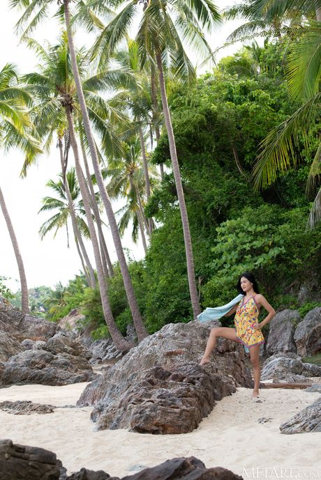 Asian teen Kahlisa bares herself on a beach while eating watermelon