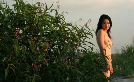 Asian teen Tiang Fang models totally naked on a rocky outcropping