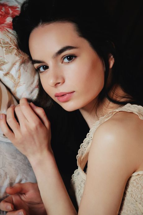 Attractive teen Debora A removes her lingerie and poses nude in the morning