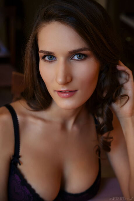 Attractive teen Elina removes her lingerie and heels to get naked on a table