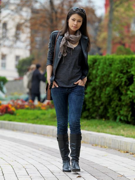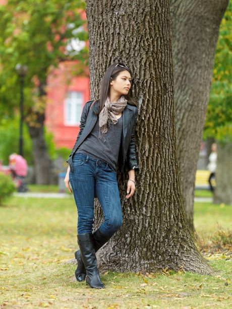 Attractive teen Jackie D removes her lingerie and boots to pose nude in the mirror