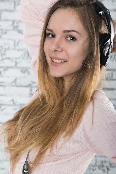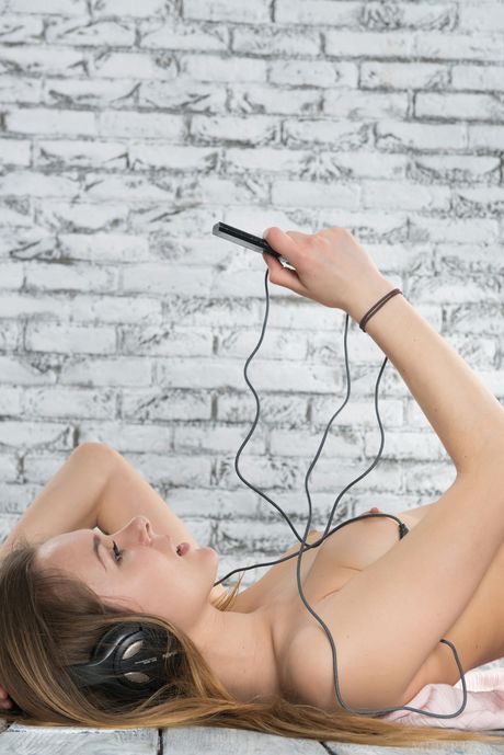 Attractive teen Katie A removes her bikini and socks to pose nude