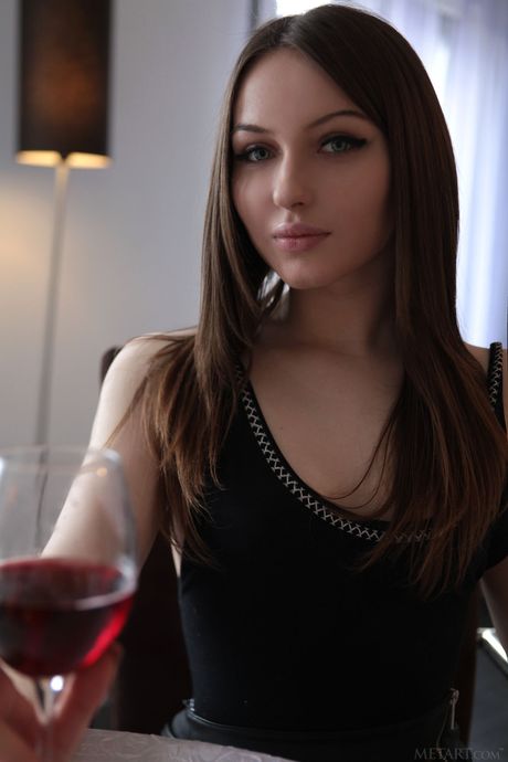 Attractive teen Madison Joan removes a black skirt and thong to pose nude