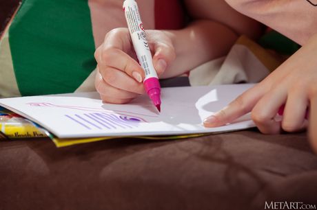 Bashful teen Isabele removes her underwear to pose nude without embarrassment