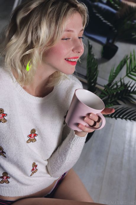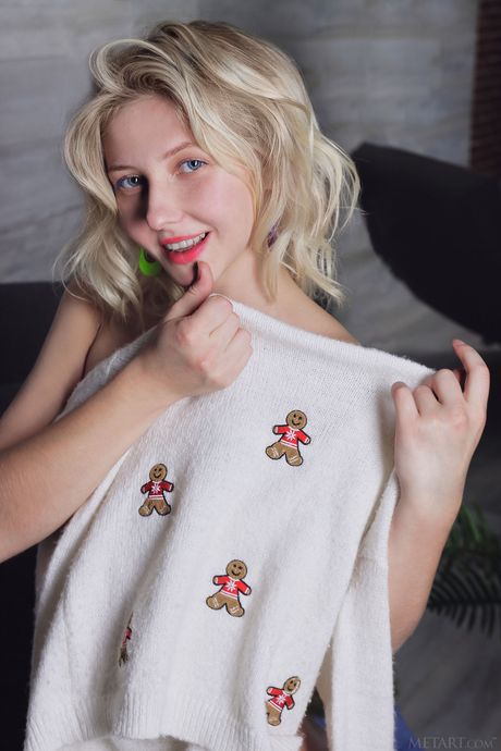 Bashful teen Jessika removes her clothes and socks to pose nude in a bedroom
