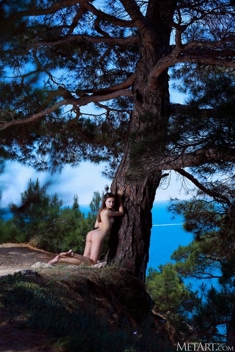 Bashful teen Rosalina bares herself on a cliff overlooking the sea