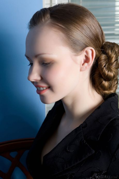 Beautiful teen Virginia Sun strips to her stockings and heels in a solo