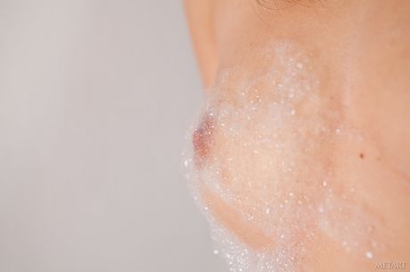 Bella C takes off her sexy lingerie and boots and gets in the bathtub
