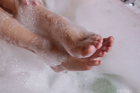 Bjorg Larson gets naked and wet in the bathtub