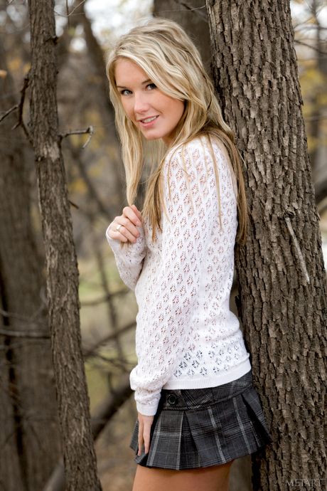 Blonde girl Rikki Lee Fletcher gets naked in the wild and shows her big tits