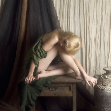 Blonde Russian Jane A strips and poses naked in the bedroom