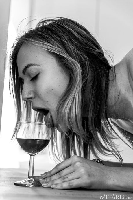 Blonde teen Aislin strips off in the kitchen while eating a bowl of cereal