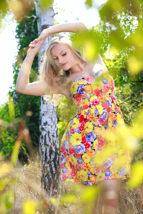 Blonde teen Alessandra A gets naked in an enticing manner