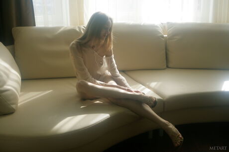 Blonde teen Anna AG models in the nude on a chair with grace
