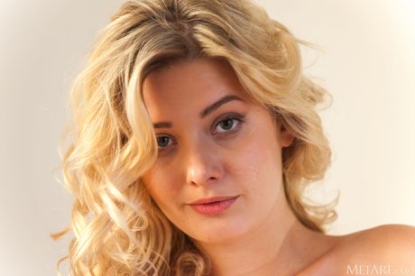 Blonde teen Edwige A removes a bra and shorts to get naked with certainty