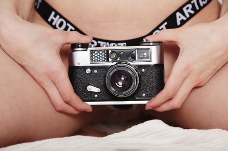 Blonde teen Ellie removes her underwear to pose nude without shyness
