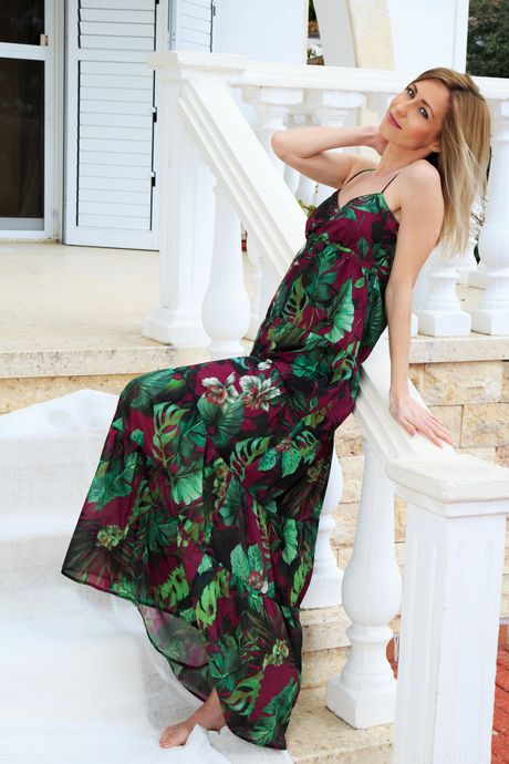 Blonde teen Janelle B gets naked on a set of stairs in a sexy manner