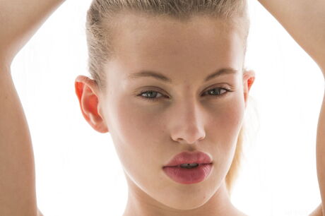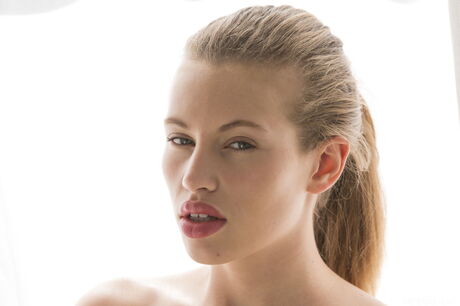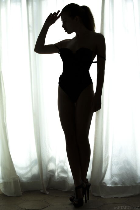 Blonde teen Katia removes her lingerie to pose nude in high heels