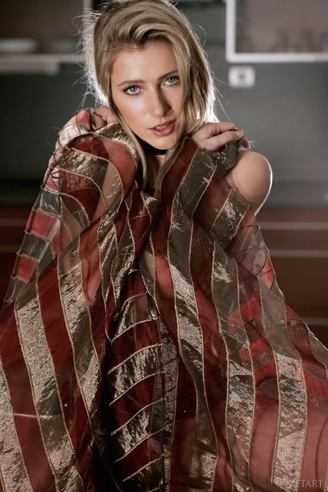Blonde teen Scarlett A highlights her perfect pussy while totally naked