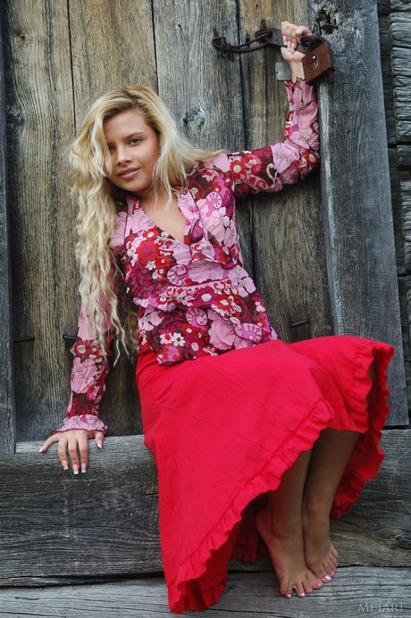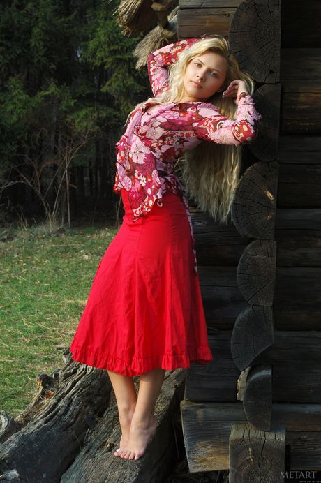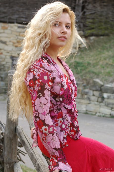 Blonde Ukrainian Angelini A strips naked & poses in the countryside