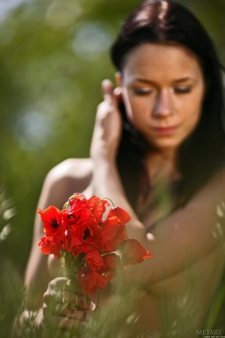 Brunette chick Gwen A takes it all off on a patio with conviction